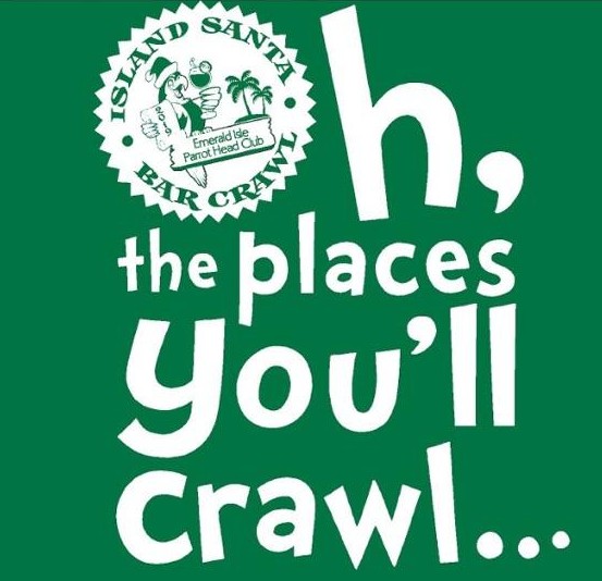 This year’s Island Santa Bar Crawl T-Shirts will be available for purchase online until November 10, 2019.  The t-shirt is green and white, long sleeved and made of soft cotton.  The price of the shirt is $15.  We will have a limited number of shirts available on the day of the event, but we are encouraging online orders to be sure that participants get their preferred size.  You can add your t-shirt to your order during online registration for the event.  Be sure to get yours now….Oh the Places You’ll Crawl!!